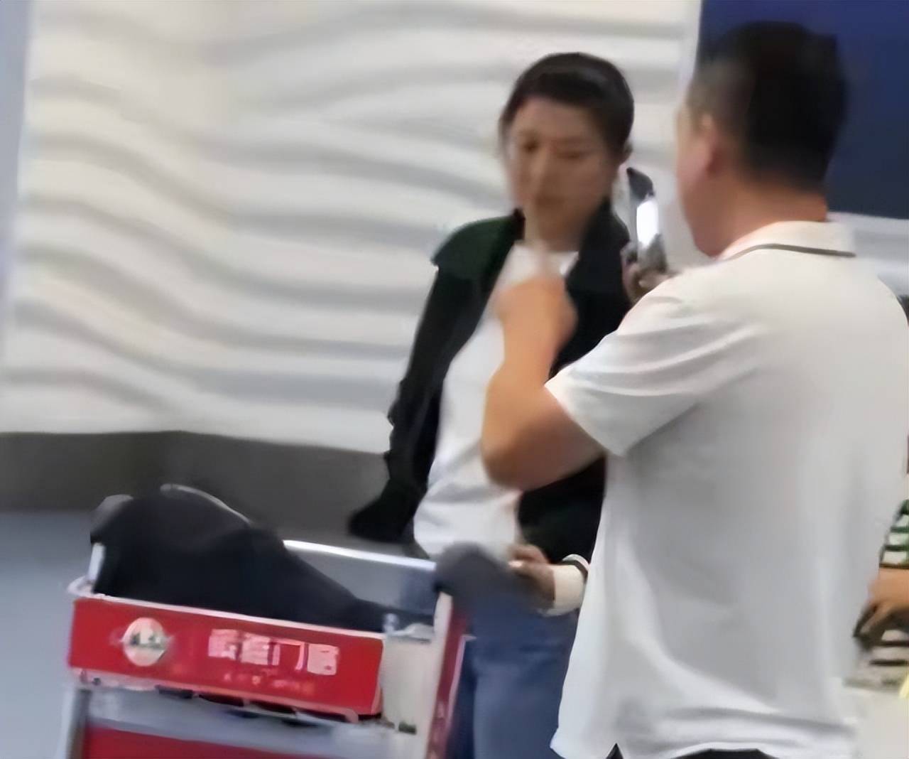 或许是其身边的男人给了她足够的底气,在其身边一直拿着打电话的男子是闫学晶第二任老公马明东,他可是实力雄厚的地产富商,手里握着很多资源和人脉。